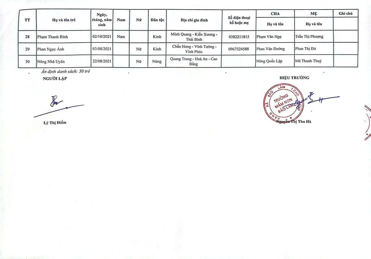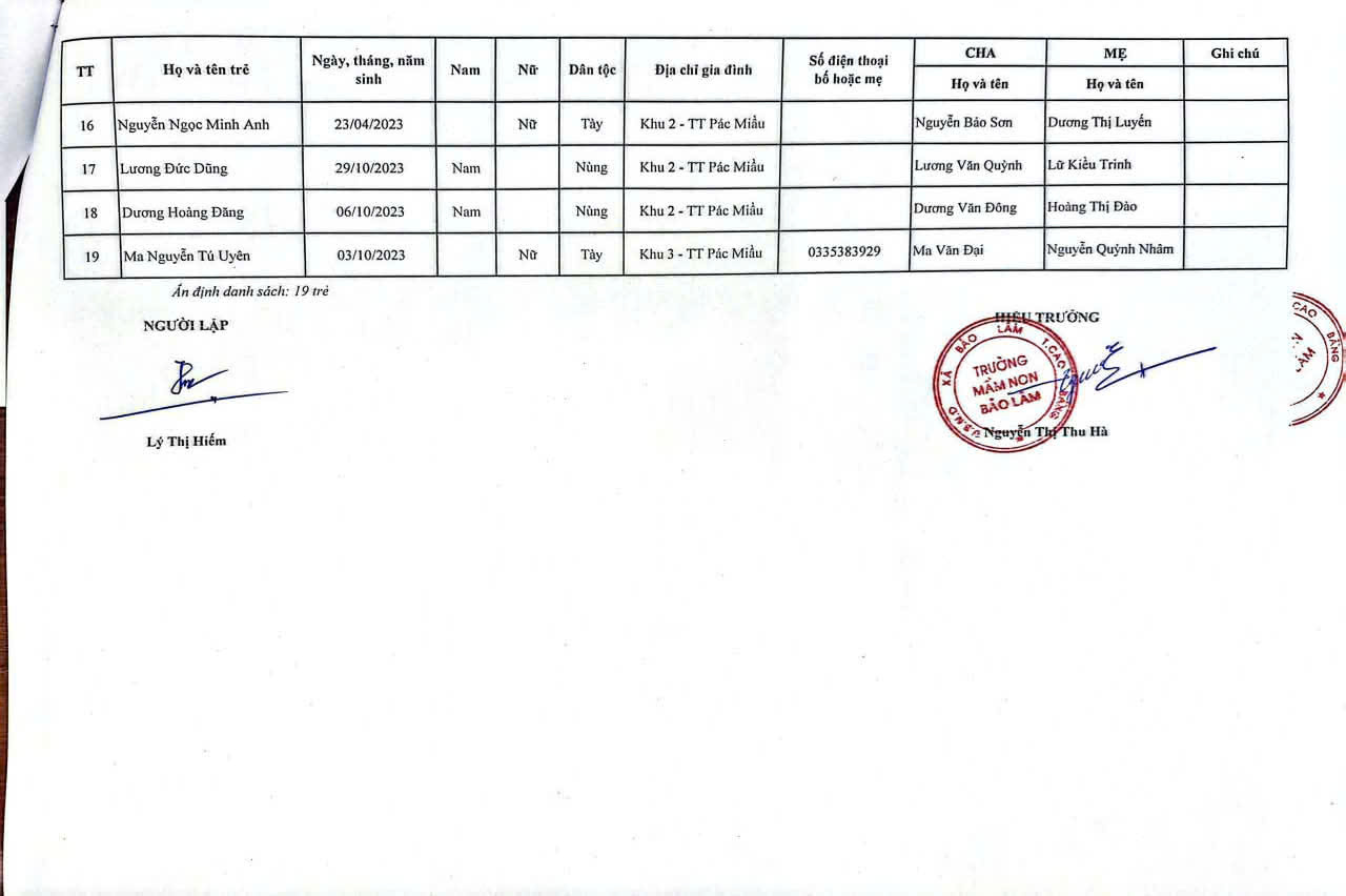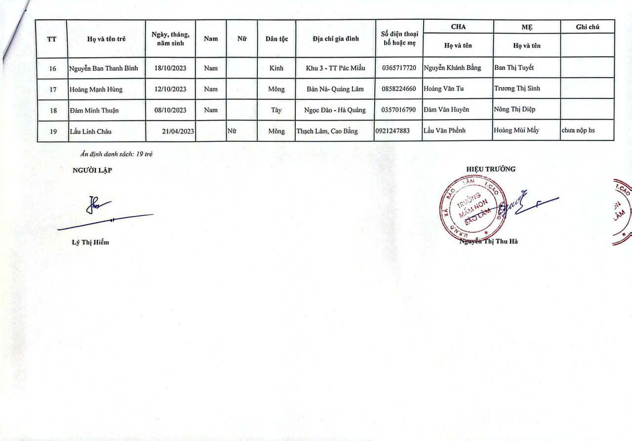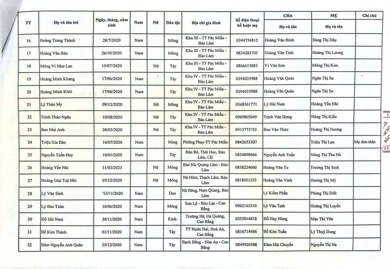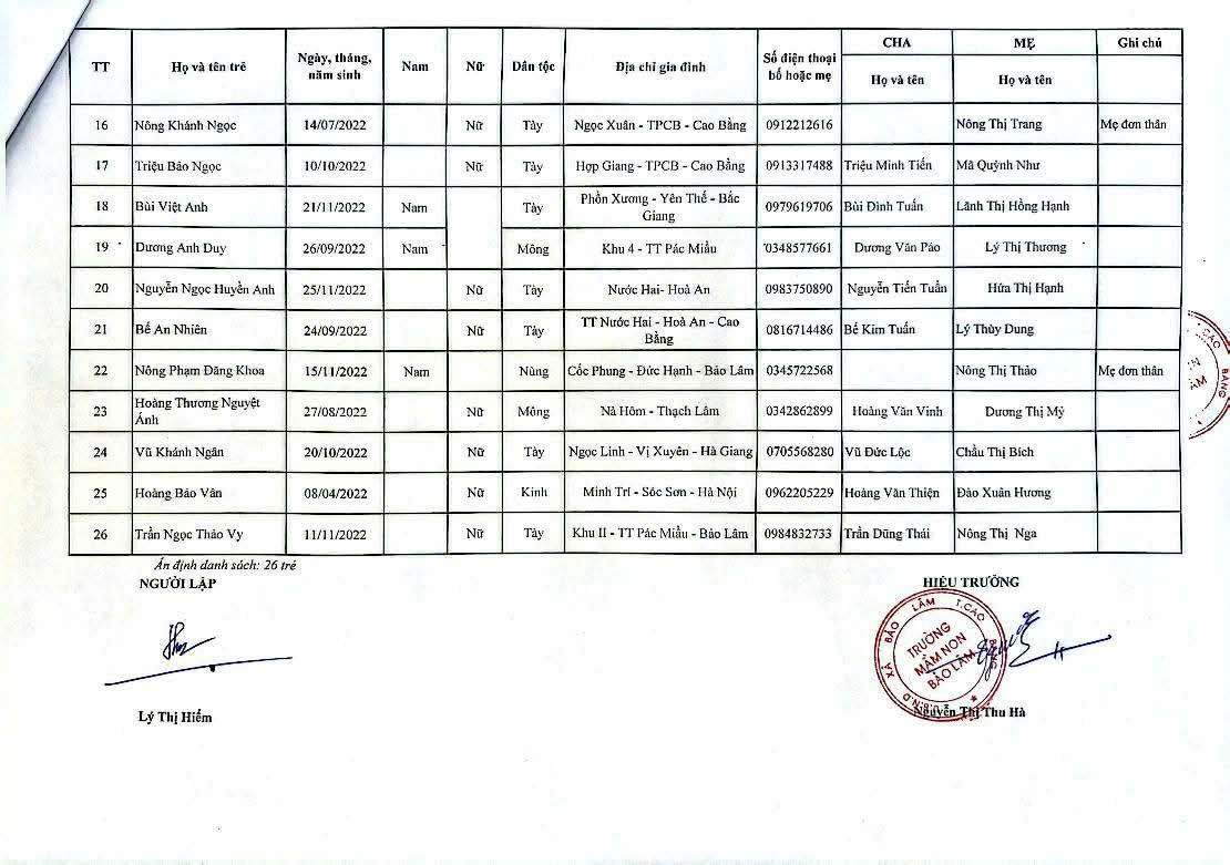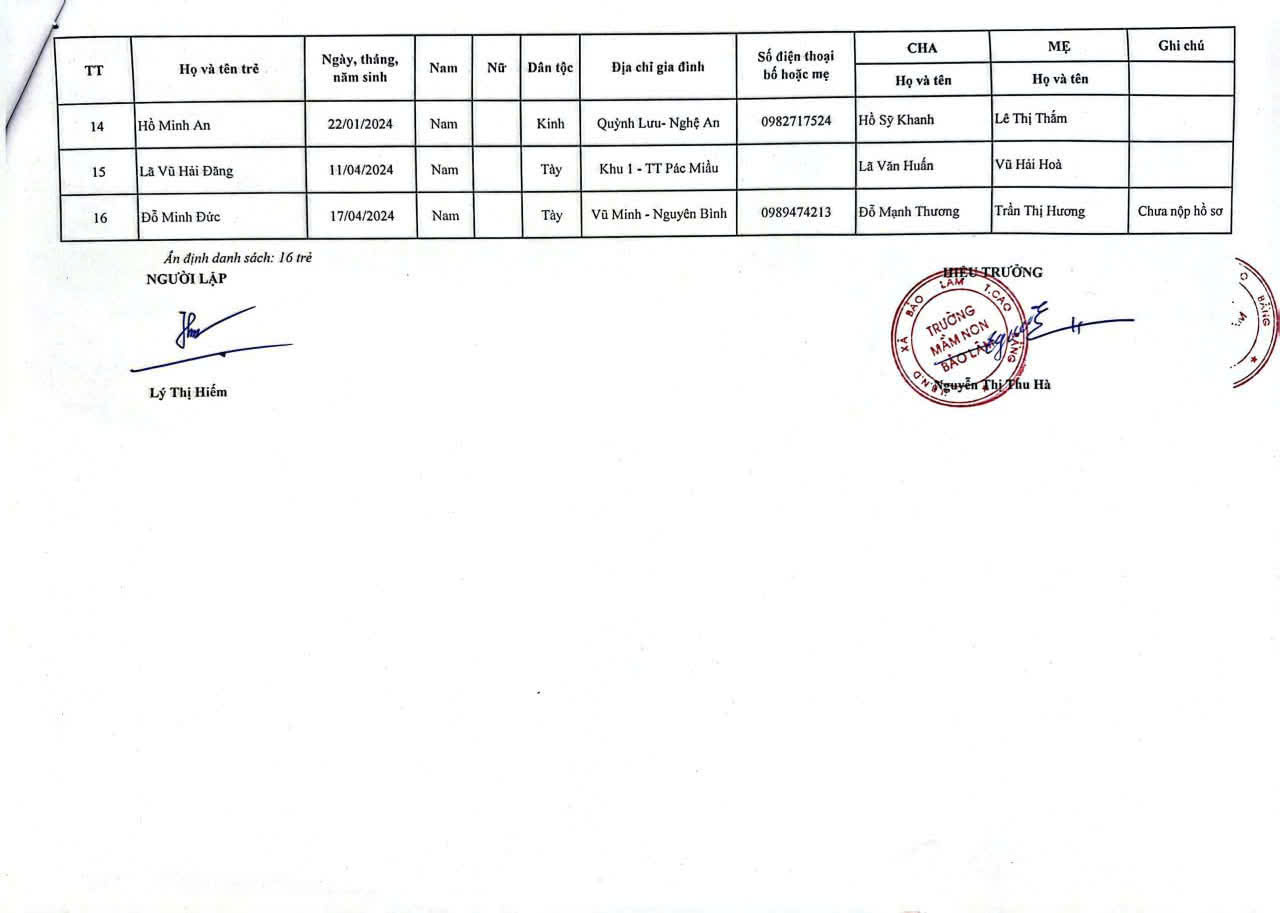 THÔNG BÁO DANH SÁCH PHÂN LỚP NĂM HỌC 2025-2026 11/08/2025 698 4 minutes read Trường mầm non Bảo Lâm trân trọng thông báo tới các bậc phụ huynh danh sách lớp học năm học 2025-2026 như sau: